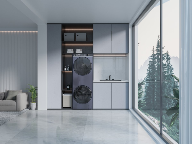 为满足用户对阳台整洁、美观的需求,海尔洗衣机提供了以海尔叠黛H2洗干集成机为主推产品的客厅阳台一体化场景。外观上,该产品能与阳台柜同步设计,超薄机身能够实现纯平嵌入,同向开门更美观;在功能上,这款产品“一台顶多台”。下筒洗衣机搭载“精华洗”,先激活洗衣液再洗衣,洗衣服又快又干净;上筒干衣机搭载双擎热泵和3D透干科技,能够将衣物烘得舒展透干、蓬松柔软;上下筒之间还能够实现洗烘联动,衣物洗完前15分钟烘干自动启动预热,更加智能省时。